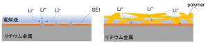 図1 (a) リチウム金属負極表面 (b)ポリマー膜適用時のリチウム金属負極表面